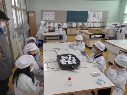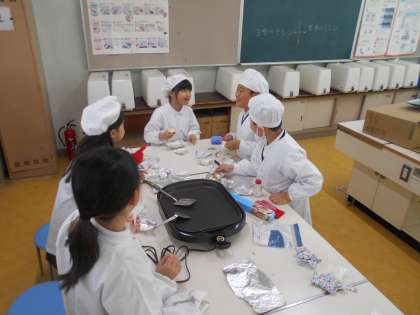 今日はクラスごとに子どもたちが収穫したさつまいもを使い「おいもパーティー」を開催しました。やけどしないようにみんなで気をつけながら楽しく活動できました。(写真は1組と2組))