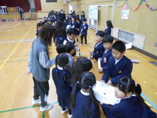 みんなが楽しく活動するには、2年生のみんなが遊びのなかで「優しい」態度で1年生に接することが大事です。