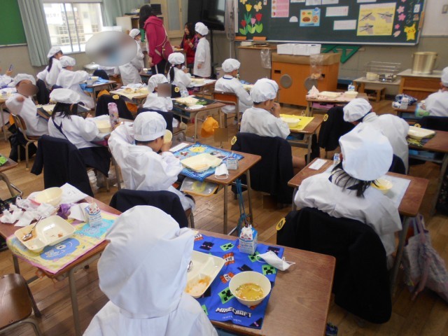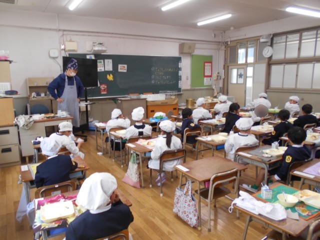 調理員さんたちも子どもたちの様子を教室まで見に来てくれました。