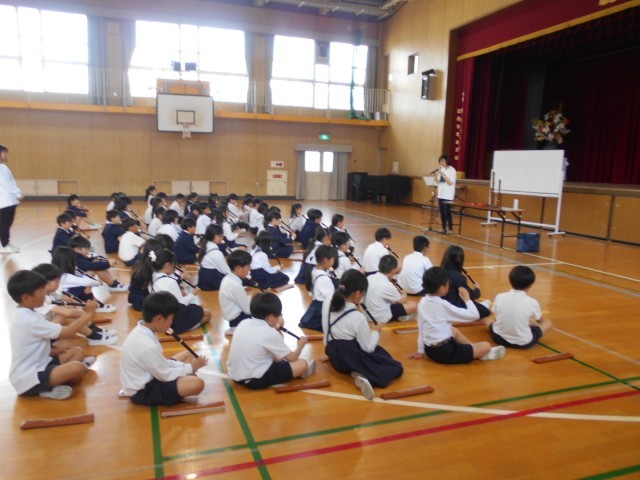 今年度も学校がお世話になっている先生にリコーダーの種類や演奏の仕方について教えていただきました。