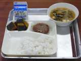 10月22日(木)、今日の給食のメニューは、「ごはん、和風ハンバーグ、みそ汁、...