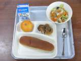 10月30日(金)、今日の給食のメニューは、「コッペパン、アプリコットジャム、...