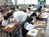 6月25日(木)、1年生は図画工作科の学習で、パスを使ってカタツムリに色を塗り...