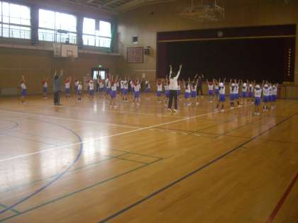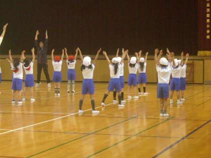 1年生が、ラジオ体操第一の練習をしていました。授業を受ける態度も日ごとに良くなっています。