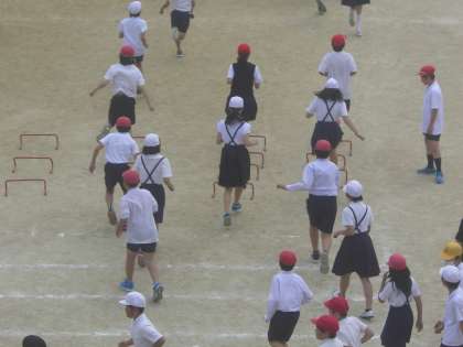 体力向上に向けてのトレーニング週間です。1年生は、50m走、全校でランランタイム