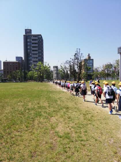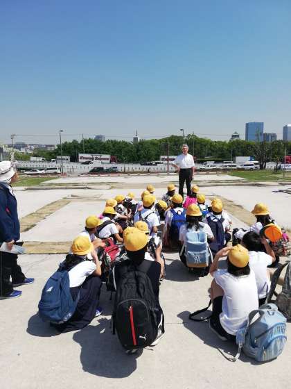 難波宮についての説明を聞いています。