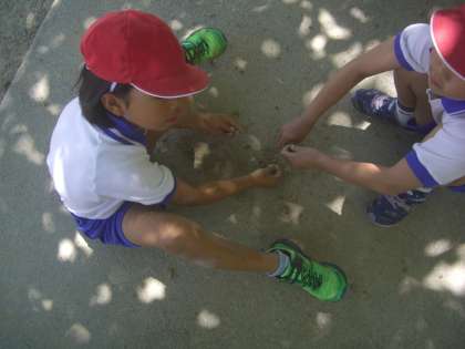 今日は、30度を越える気温で、湿度も高い一日でした。さすがにいつもよりは、外で遊ぶ人数も少なく、桜の木陰で地味に遊ぶ子どもたちが目につきました。
