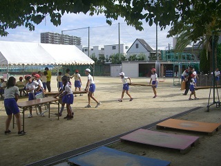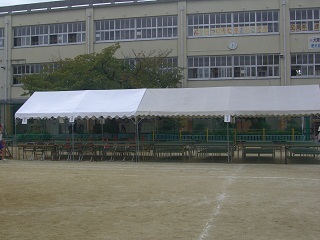 入退場門、本部席、敬老席、得点板等次第に準備が整いました。