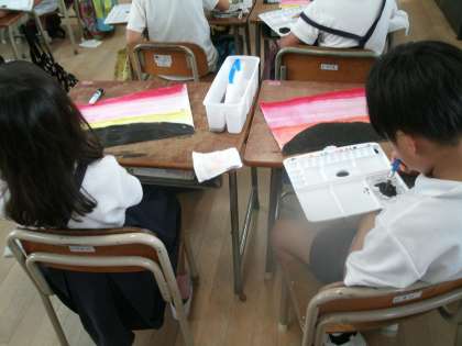 それぞれが、黙々と、自分のイメージを画用紙に表現しています。