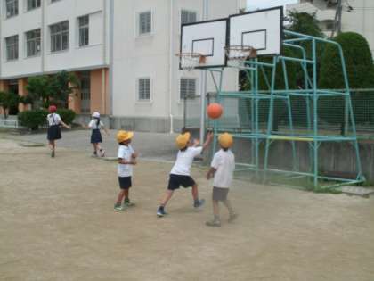 ウィザーズ 八村塁選手の影響でしょうか、バスケットボールに熱中している1年生。