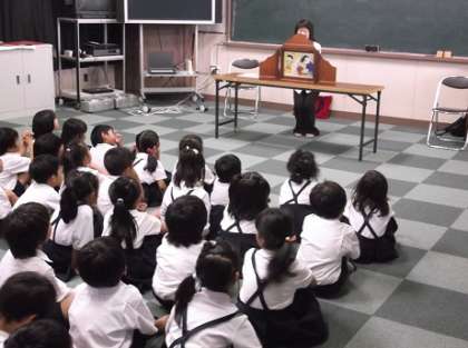 区の人権擁護委員の方に来ていただき、人権紙芝居をしていただきました。