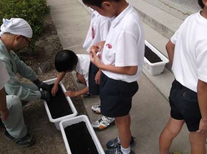 その後、「人権の花」運動のチューリップの球根を植えました。