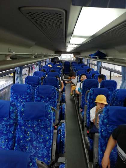 予定通り出発しました。バス内は、高ぶる気持ちと反して、静かです。