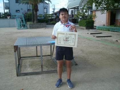 JOCジュニアオリンピックカップ第12回全日本ジュニアテコンドー選手権大会において、第3位になった6年生男子を朝会で全児童に紹介して、表彰しました。
