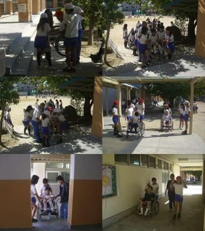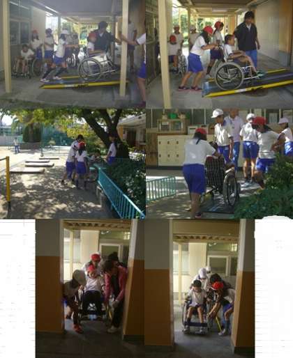 3時間目に、各班に分かれて車いすに乗り、校舎を巡りました。