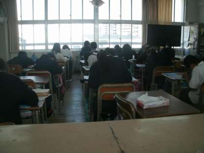 机の向きを変え、みんなが真剣に取り組んでいます。無言です。