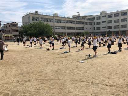 子どもたちの姿が久しぶりに戻ってきました。朝の登校してきた皆さんの様子を見て、笑顔で目をキラキラさせ、とてもいい顔をしているのでとてもうれしいです。5・6年生全員でラジオ体操して体をほぐし、その後、それぞれの会場に分かれて活動をしました。
