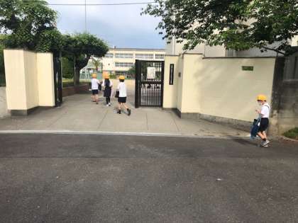今日は、2年生が元気に登校しくれました。マスク着用と検温のチェックを受けたら手洗いをして運動場にソーシャルディスタンスで並びました。