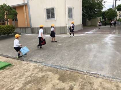 下校するときも間隔を開けるソーシャルディスタンスの行動が守れています。
