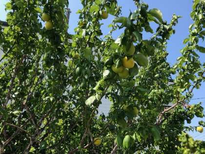 梅雨入り間近となりました。校門わきの梅の木が、実を熟しています。