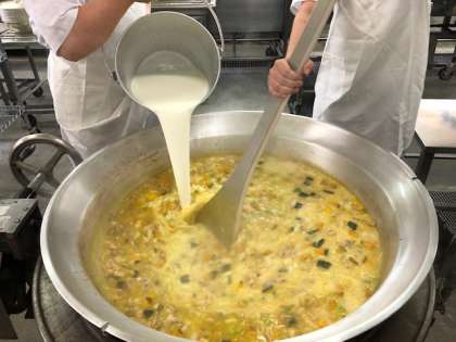最後に牛乳、クリームを加え、煮込んで仕上げます。