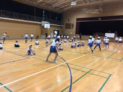 今日は雨模様のため、4年生が、体育で反復横跳びに取り組みました。