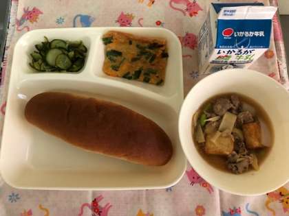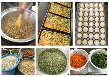 今日の給食のチヂミには、にんじんとにらが入っています。