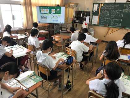 5年は、算数で「直方体や立方体のかさを表そう」の単元で複合図形の立体の体積を求める学習をしました。複合図形の面積の学習などのこれまでに学習したことをもとに一人一人考えを発表し合いました。
