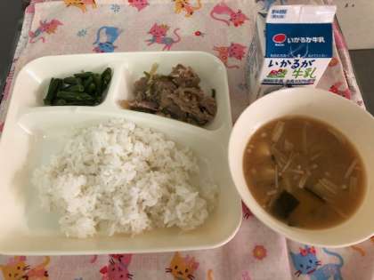 今日の給食では、香りのある野菜の「しょうが」を使った、「豚肉のしょうが焼き」が登場しました。