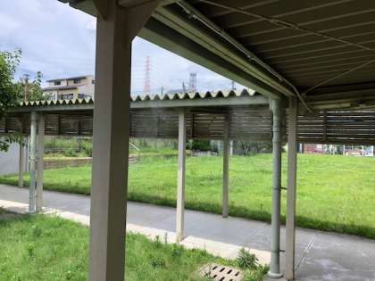 夏の暑さ対策で校内にミストシャワーを設置しています。