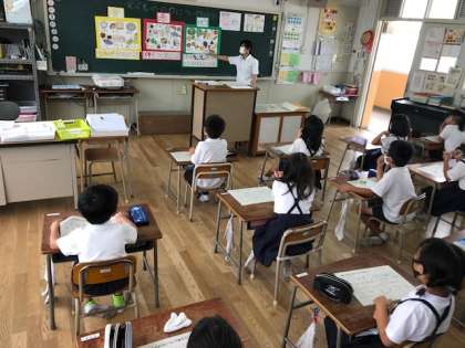 2年生で、教育実習生による「食に関する指導」で、「食べ物の力について知ろう!」の学習をしました。黄(エネルギーのもとになる)・赤(体をつくるもとになる)・緑(体の調子をととのえるもとになる)の3色食品群について知り、食べもののはたらきやバランスの良い食事の大切さを学びました。