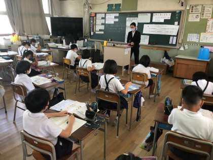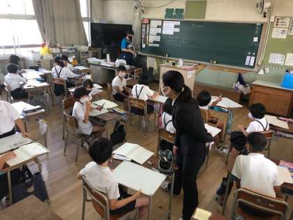 3年生が、算数科の単元「10000より大きい数を表そう」の学習で、教育実習生による授業を受けました。話をしっかり聞いて、自分の考えをノートに書きこんだり、発表したりして、大きな数の表し方について理解をしました。