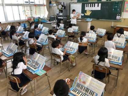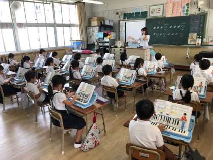 1年生が、音楽の時間「どれみのおとであそぼう」で鍵盤ハーモニカ「どこ どこ ど」を練習しました。
