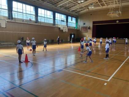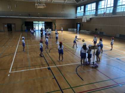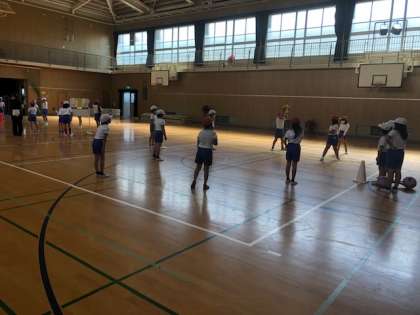 3年生は、体育でネット型ゲーム「プレルボール」とかけっこ「小型ハードル」に取り組んでいます。