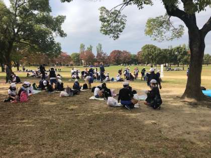 昼食、お待ちかねのお弁当を班の友だちといっしょにいただきました。
