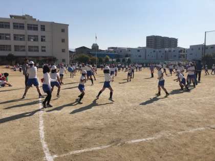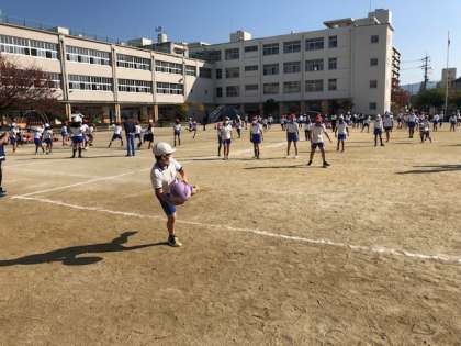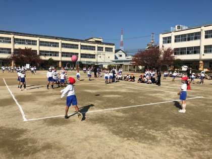 天候に恵まれ、全校児童が、低・高学年交代でコートいっぱいに動き回り、楽しい時間を過ごしました。