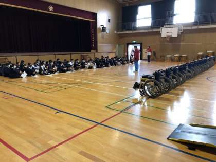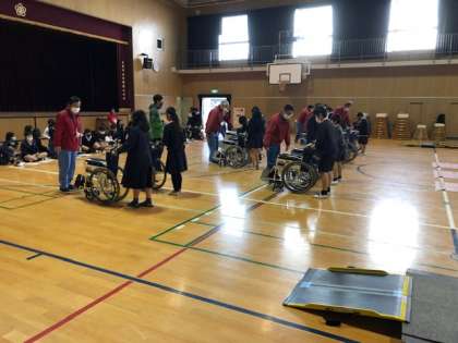 5年生が、総合的な学習の時間の取り組みで、大阪市立心身障がい者リハビリテーションセンターによる出前授業「車いす体験」教室を受講しました。