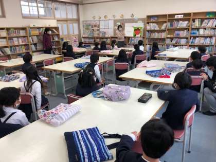 1年生が、鶴見区図書館コーディネーターの方に大きな絵本による「読み聞かせ」をしていただきました。