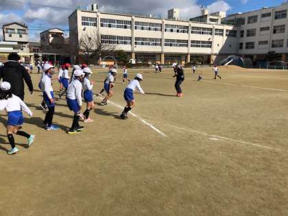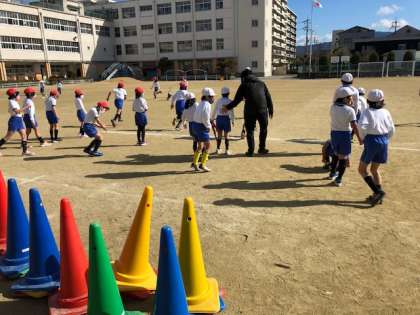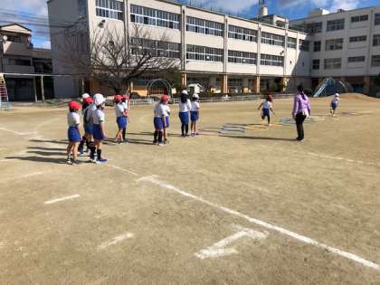 肌を刺す寒さの中でも、3年生は、多様な動きをつくる運動で、体育の時間を楽しく活動しました。