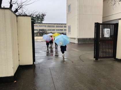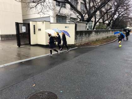 今週末は、気圧の谷や湿った空気の影響で雨が降る模様です。冷たい雨が降る今朝も茨田東小学校の児童は、学びの力と健康な体づくりのため元気に登校しました。