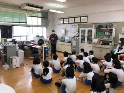 今週は、各学級の体重測定があります。測定を行う前に児童は、毎回養護教諭より健康に関する保健指導を受けます。今回は、保健室の来室状況についてのお話です。最も多いのがケガによる来室です。ほかに頭痛や気分が悪くなっての来室も多くみられ、睡眠不足が主な原因としてあげられます。