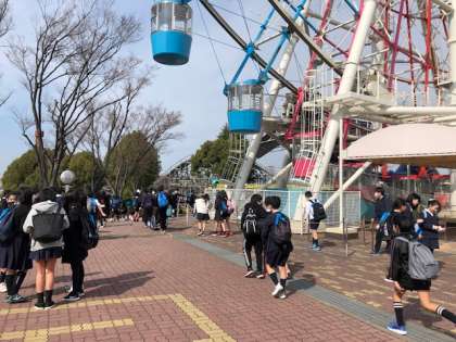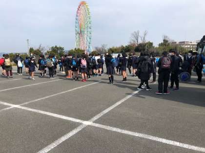6年生が卒業遠足でひらかたパークに到着しました。楽しい思い出づくりの1日を過ごしてほしいと思います。