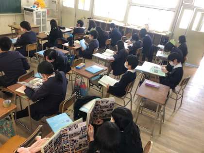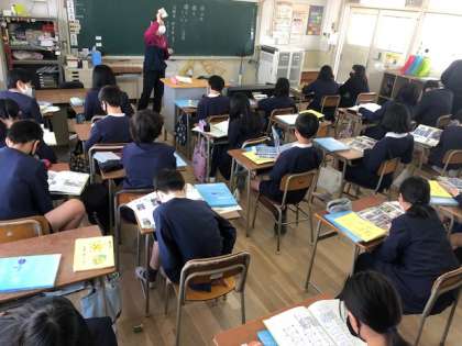 6年生が、最後の授業に臨みました。自分たちで思い出のページを編集した記念の卒業アルバムを担任から受け取り、残り少ない学校の時間を友だちと楽しく過ごしました。