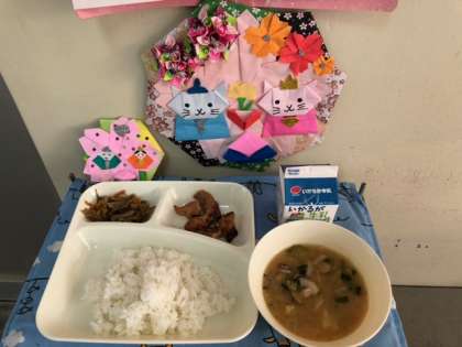 今日で、今年度の給食は終わりです。春休み中も好き嫌いせず、しっかり食べて元気よく過ごしてほしいと思います。