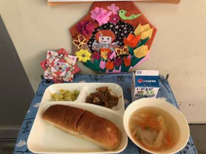 1年生は今日が初めての給食でしたが、とても上手に、しっかり食べていました。これからもいろいろな食材や献立が登場するので、楽しく、好き嫌いなく食べてもらいたいと思います。