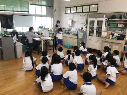 1・2年生の発育測定を保健室で行いました。はじめに保健室の正しい使い方について養護教諭のお話や映像で学びました。その後、一人一人の身長と体重を測定しました。1年生は、初めての発育測定でしたが、静かに落ち着た態度で過ごすことができました。