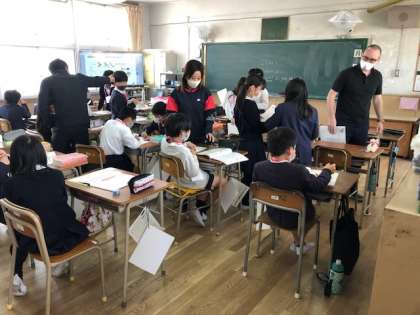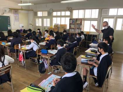 外国語活動では、C−NETの先生が毎週火曜日に来られ、児童と英語活動を楽しみます。今年は、アンドリュー・ルプラ先生が担当になりました。とても優しい男性の先生です。1年間、よろしくお願いします。
