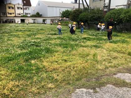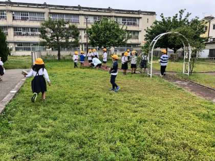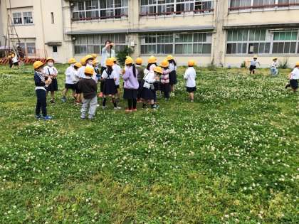1年生、生活科「はるやなつをみつけよう」の学習を芝生広場で活動しました。
