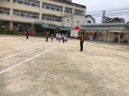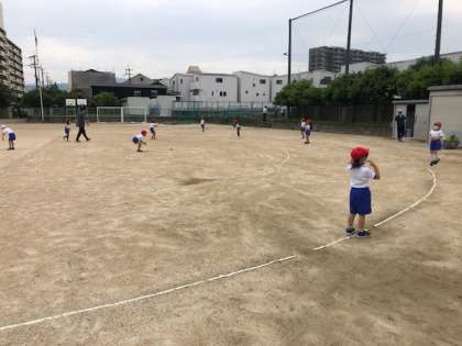 1年生は、ビニル製ボールを使ってボール投げを楽しみました。