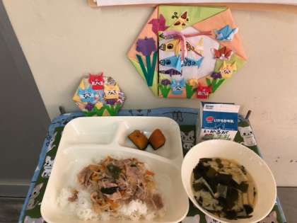 今日の給食では、干し湯葉を使った、「湯葉のすまし汁」が登場しました。